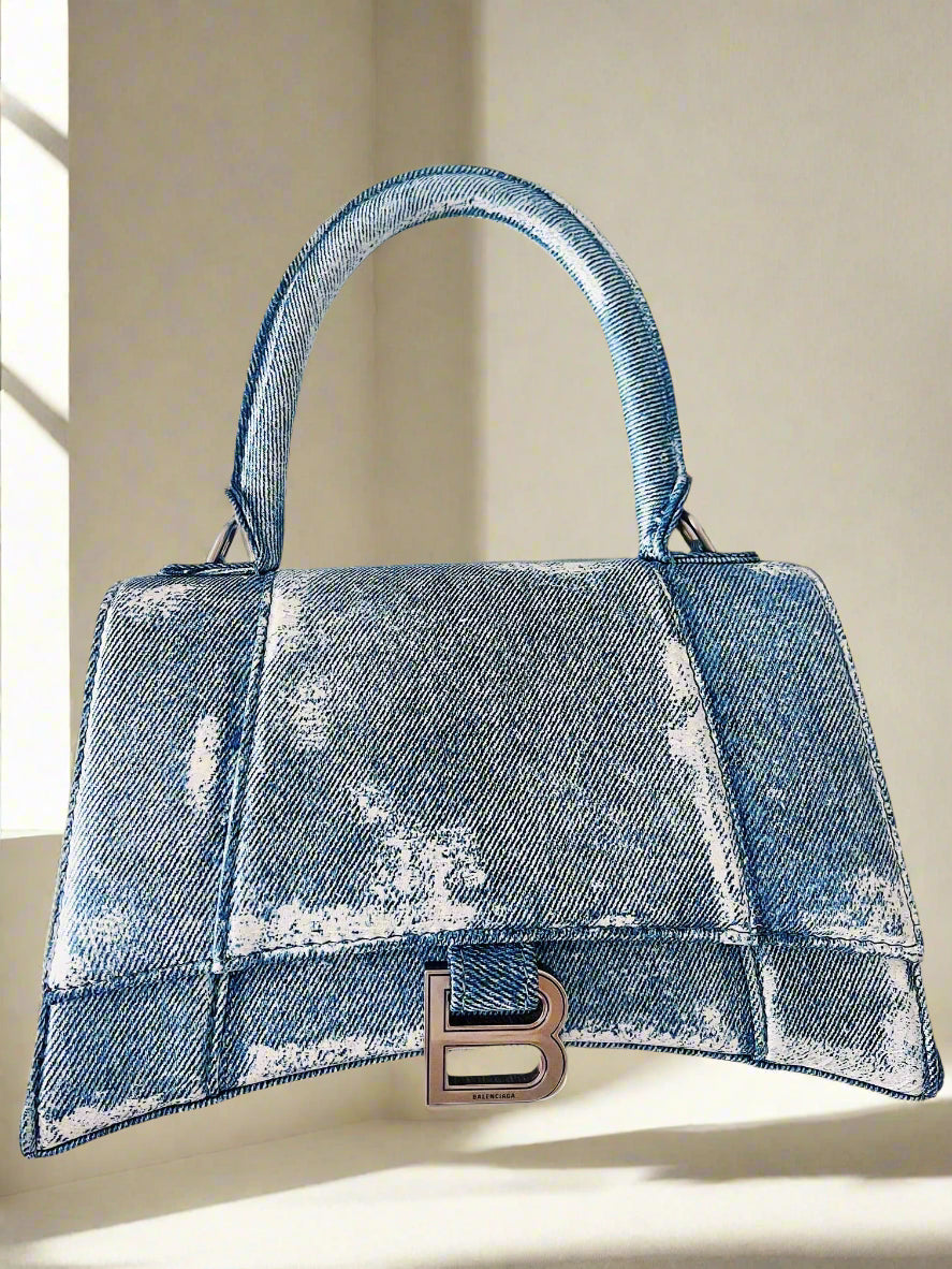 Balenciaga Denim-Effect Small Hourglass Handbag