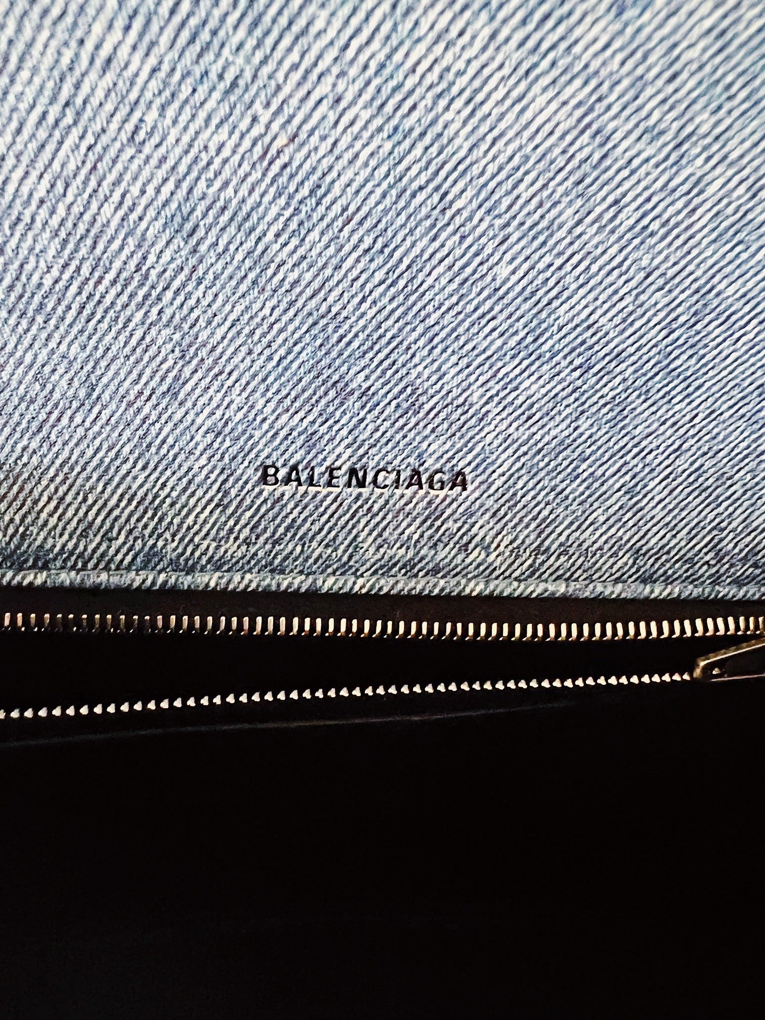 This buttery soft calf leather handbag has a trendy distressed-denim effect that will age well, unlike real denim items that may turn green over time. Designed by Denma's (Gvasalia) with his signature edginess and clean lines, this bag can be dressed up or down, making it the perfect versatile piece. It has a Y2k aesthetic, but with a more polished finish.