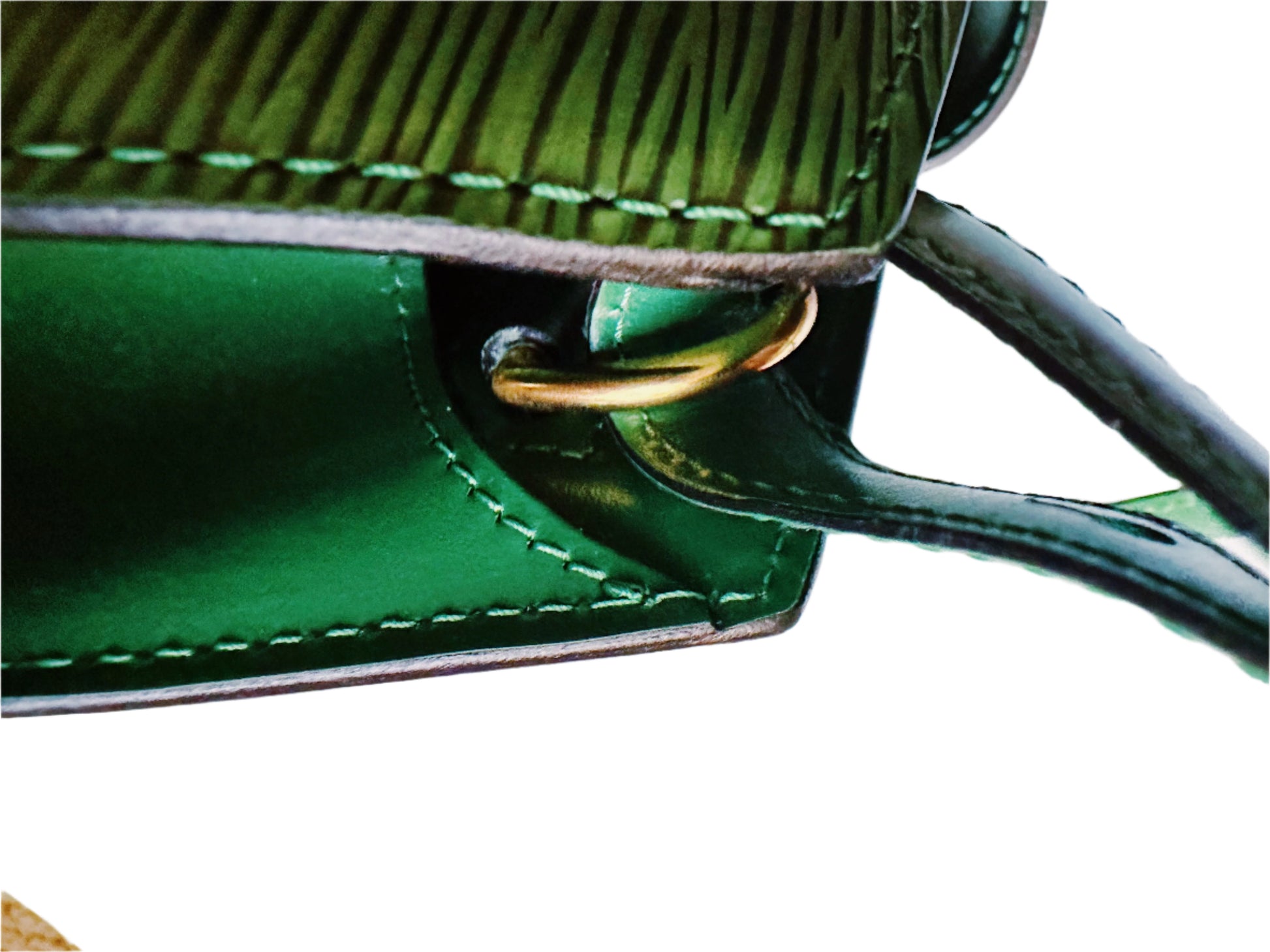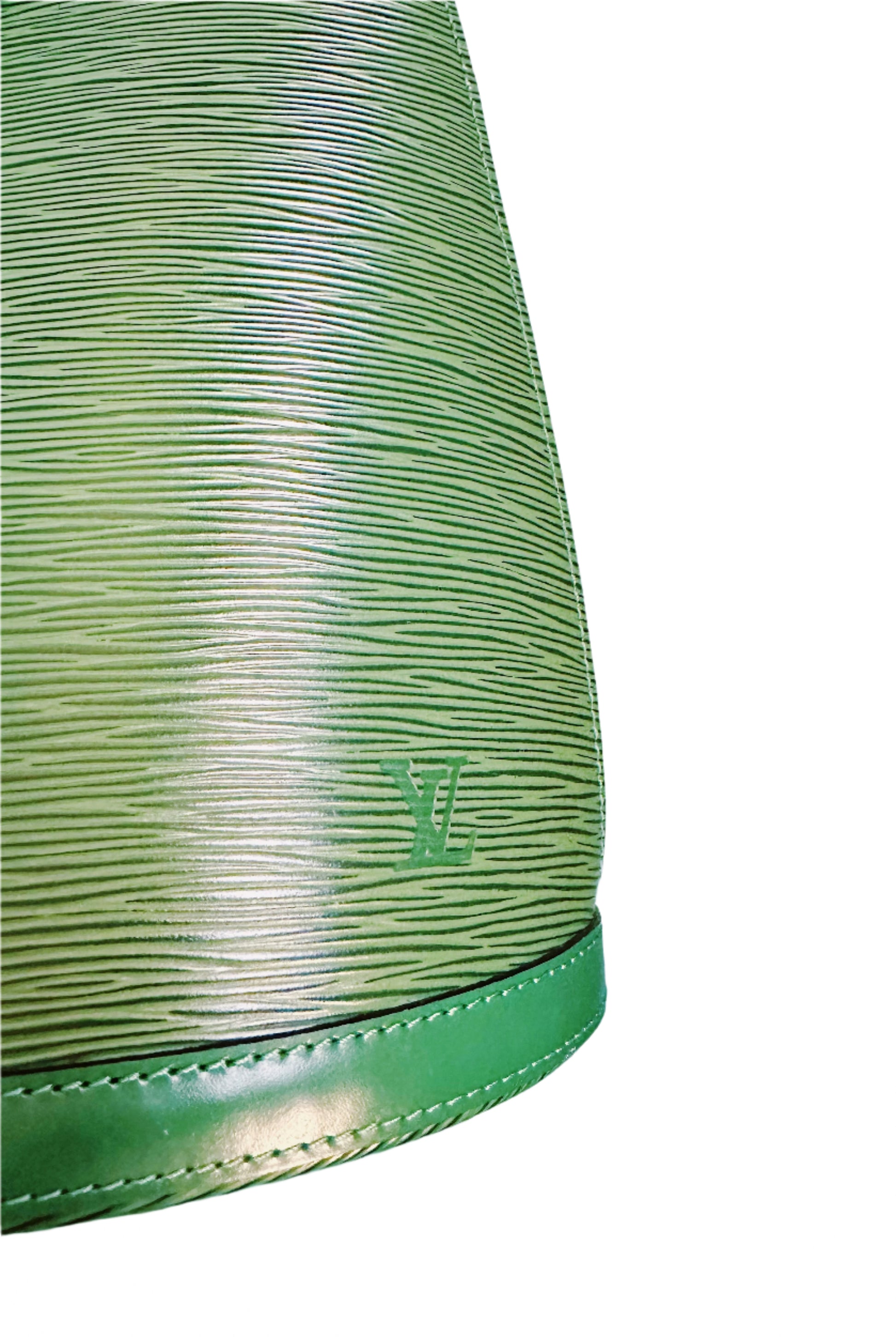 Crafted from luxurious epi leather and accented with gold hardware, this bag is the perfect size for carrying all your essentials. The striking green color of the year adds a pop of color to any outfit, making it a must-have for any fashion-forward woman.