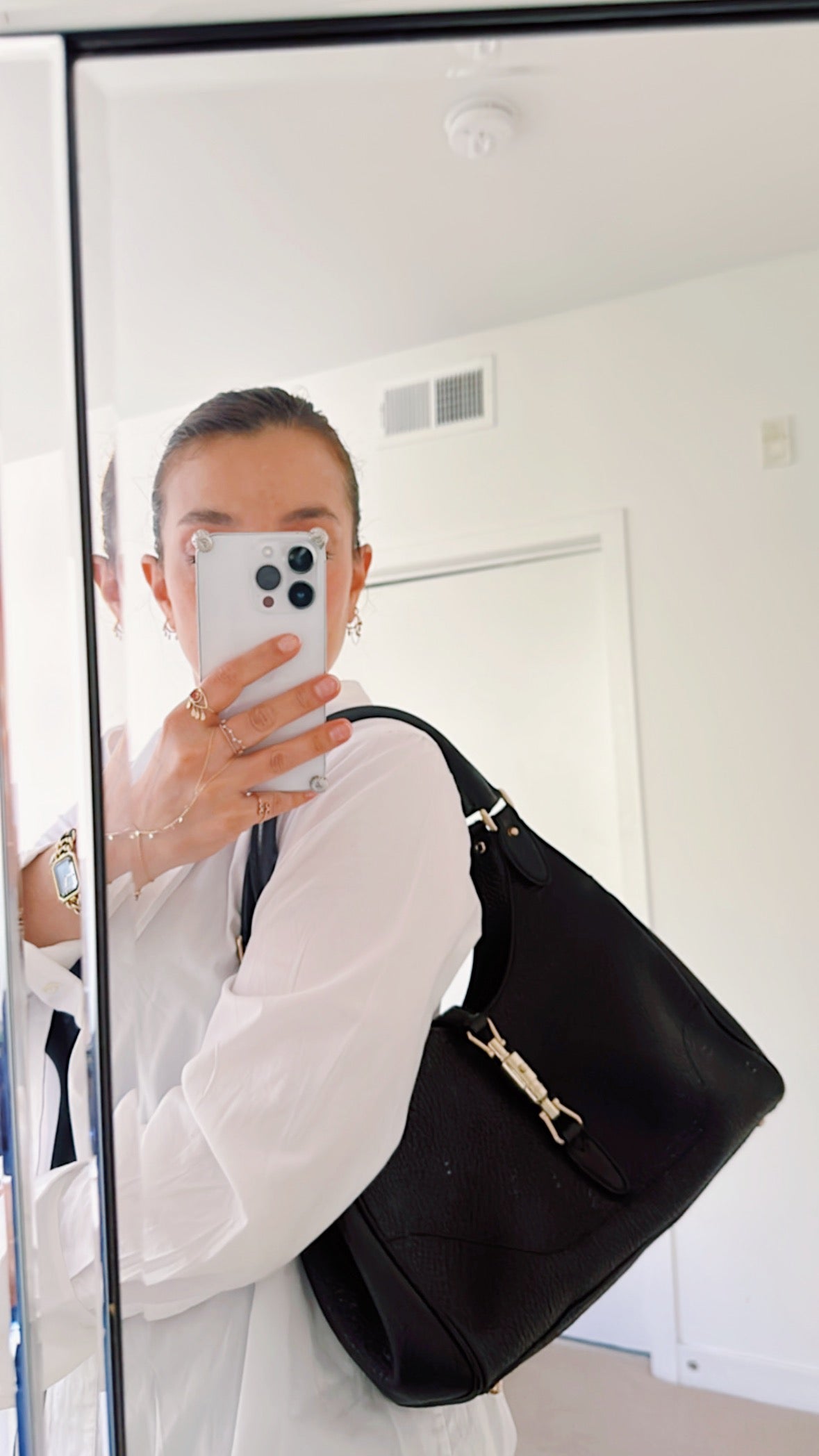 Introducing the Vintage Gucci Jackie Bardot Handbag in Black Leather, a true gem of the Y2K era. This stunning piece is incredibly rare in black leather and features iconic gold hardware. Originally released in the 1950s, it has been reissued this year for a higher price due to its timeless appeal. Named after style icon Brigitte Bardot, this handbag is a must-have for any luxury handbag collector.