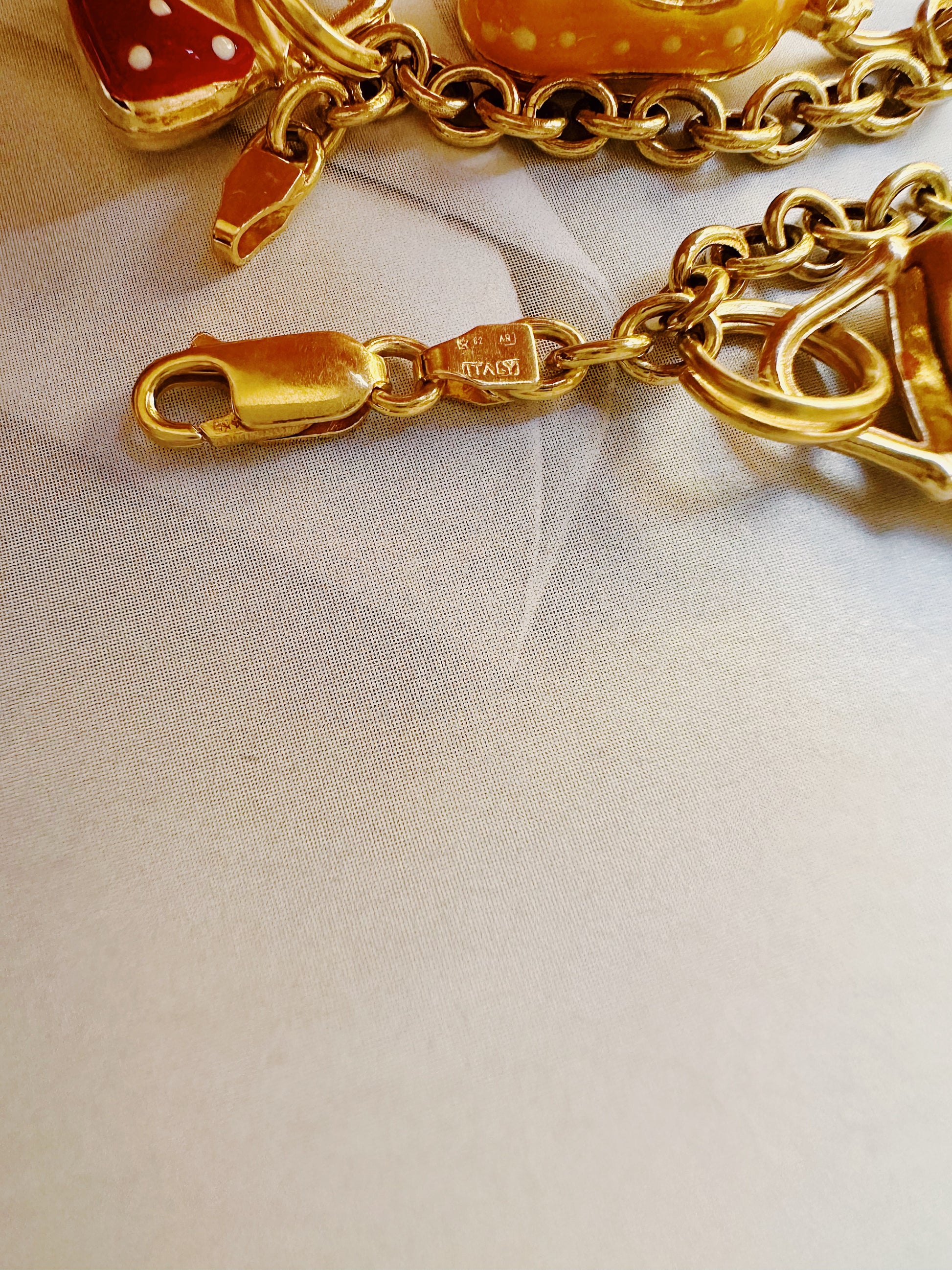 Whimsical 14 Carats Italian Yellow Gold Charm Enamel Bracelet