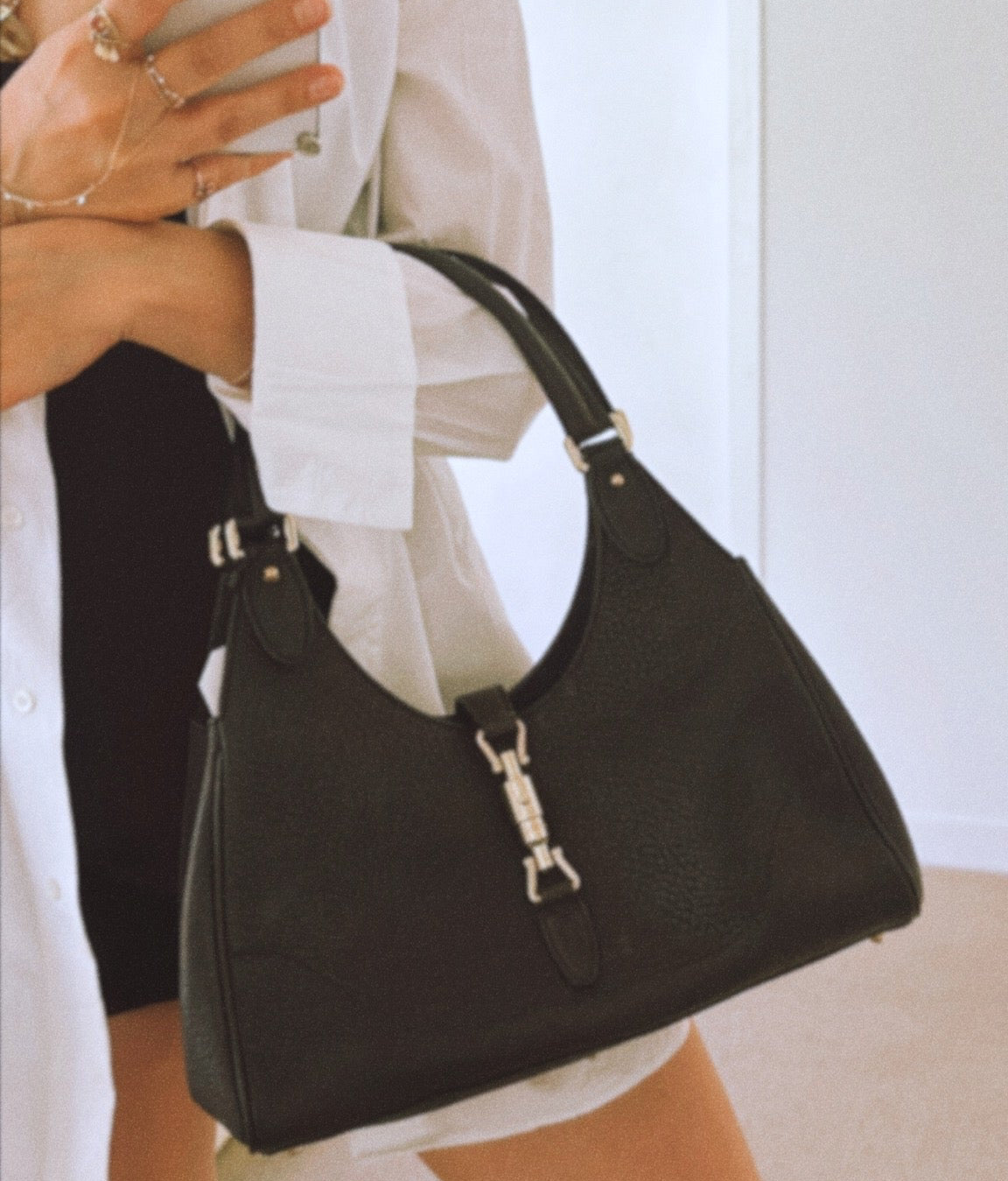Vintage Gucci Jackie Bardot Handbag in Black Leather